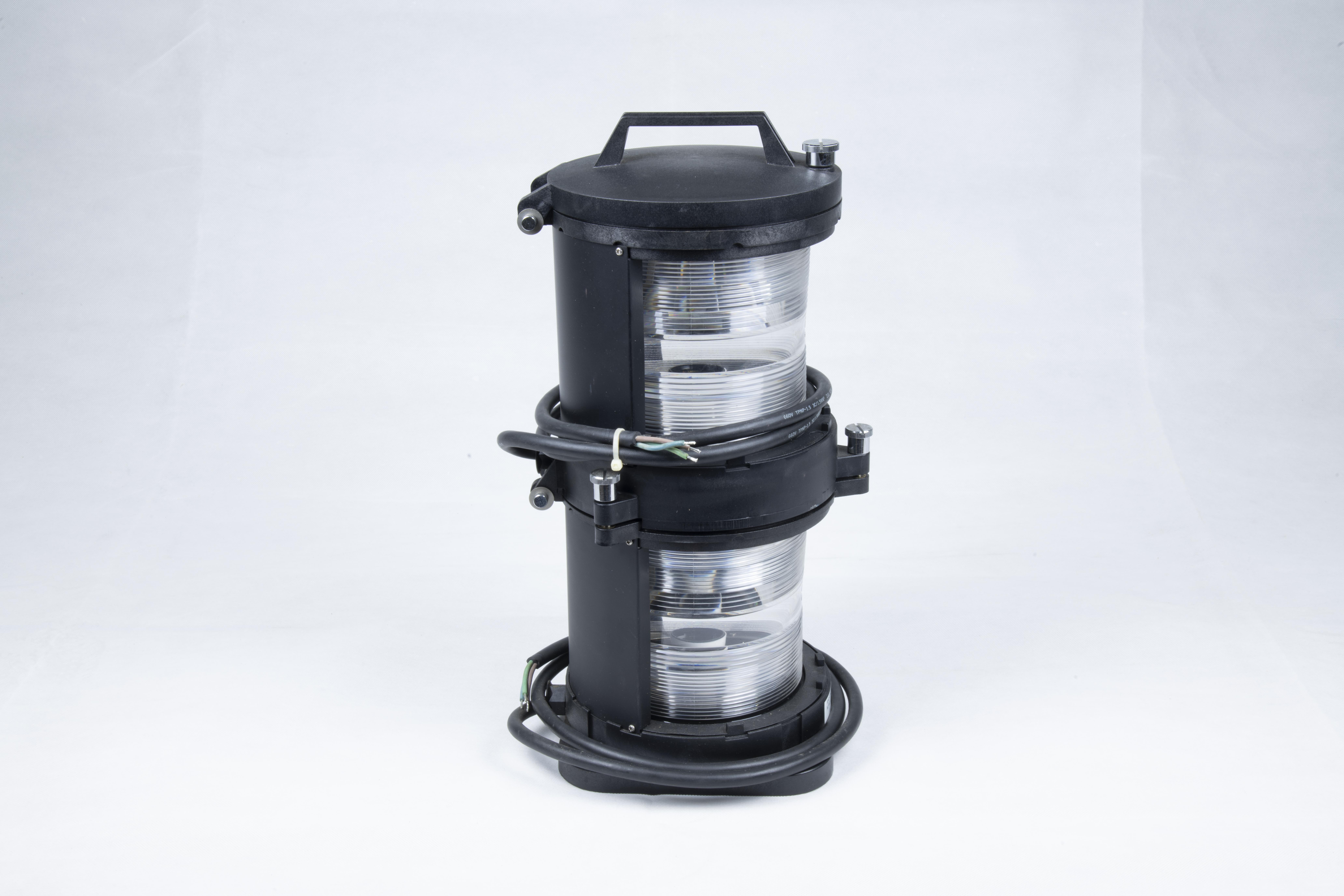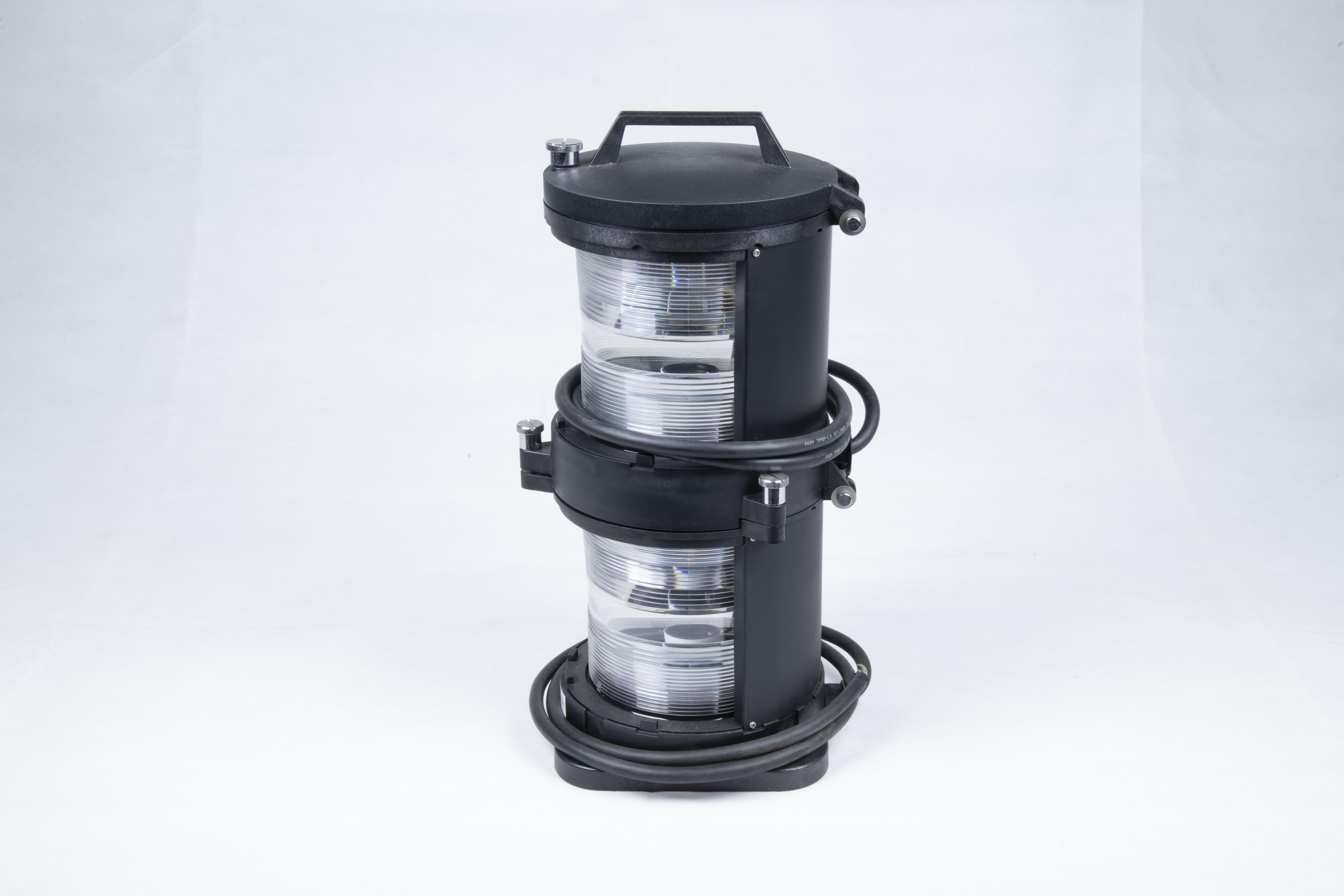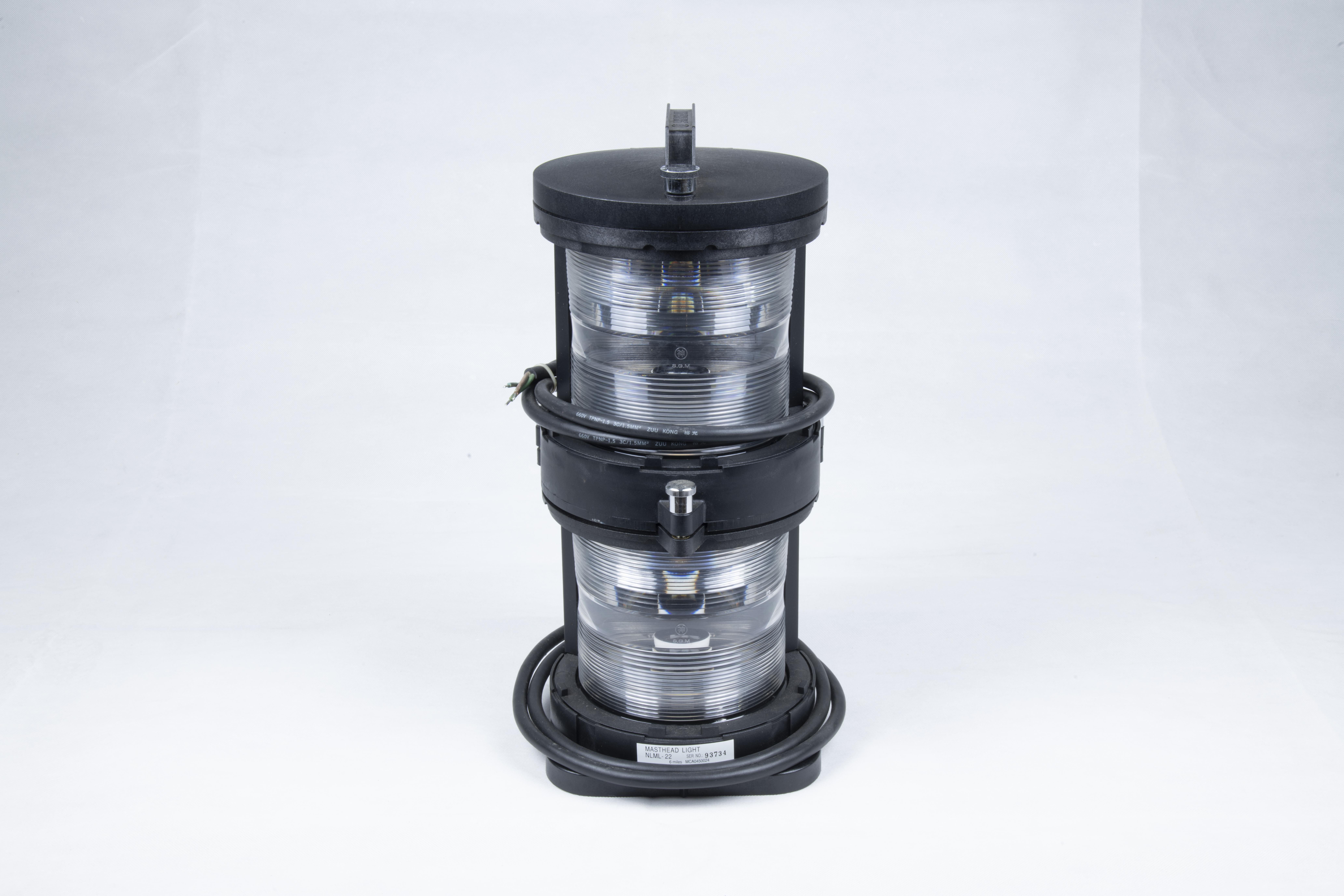 本件藏品為「航行燈」。以塑膠、金屬材料製作,藏品全長為20公分,寬20公分,高20公分。外觀為圓柱體,兩兩串接成一組。行駛時僅開設其中一個燈具,另外一個為備用燈。
